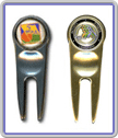 Stylish divot repair tool, with comfortable thumb indent for easy handling.